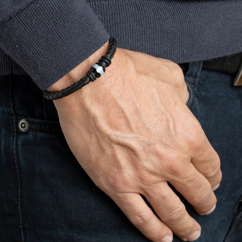 Pulsera acero y piel .