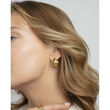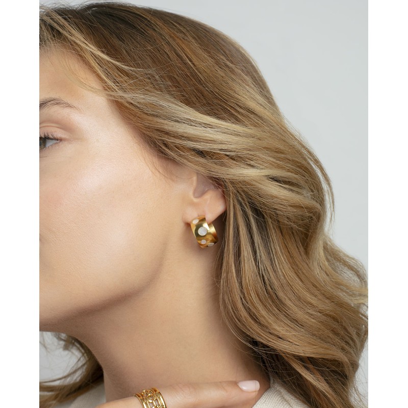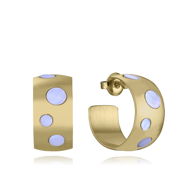 Pendientes de mujer de acero Ip dorado aros abiertos con círculos de madre perla