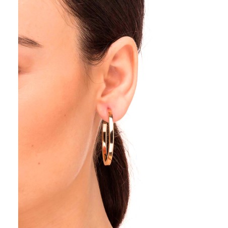 Pendientes medio Aro cuadrado 40X3mm chapados en oro. Cierre presión.