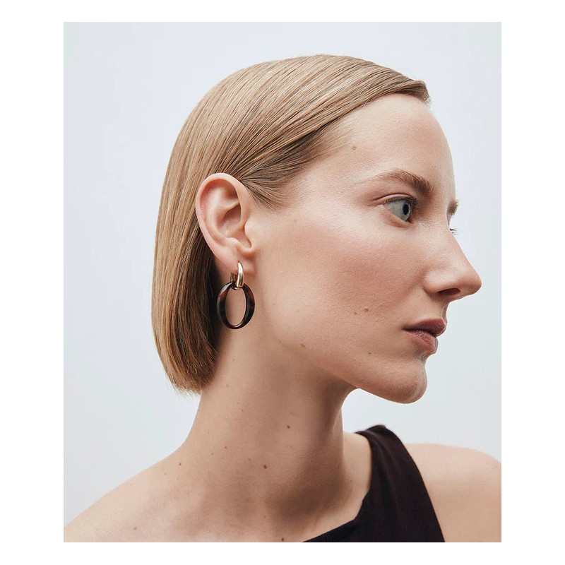 Pendientes largos chapados en oro con Acetato y Resina Marrón Vidal y vidal G3983