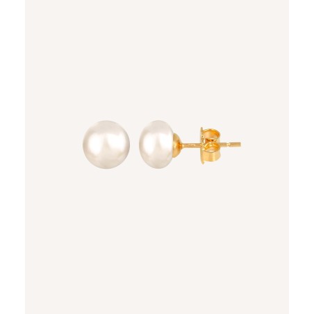 Pendientes chapados en oro con perla cultivada de 8 mm.