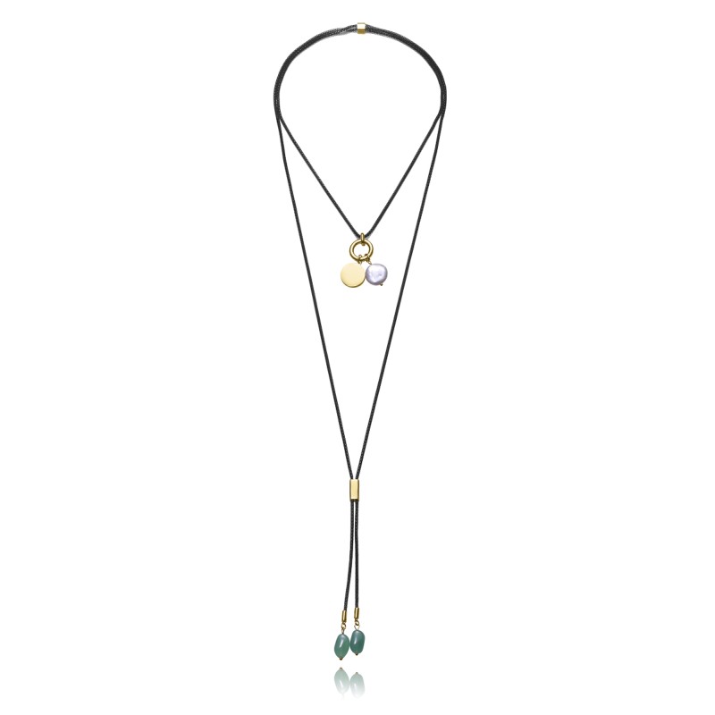 Collar en acero IP negro y agata verde.Largo 125 cms.