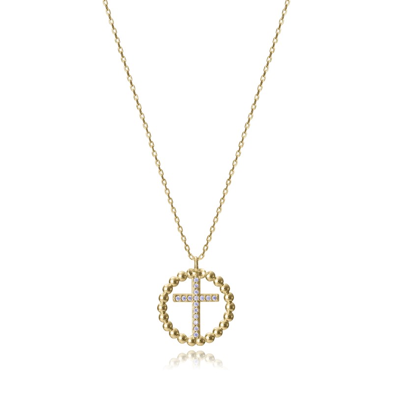 Collar de niña plata de primera ley con baño de oro con cruz con circonitas - Viceroy 13233C100-30