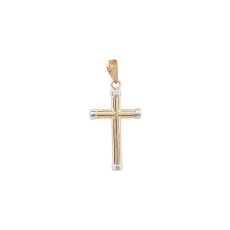 Cruz de oro amarillo y blanco de 18 k, cruz de tubo en brillo y lisa, con los cantos redondeados. . Medidas 20X14mm.
