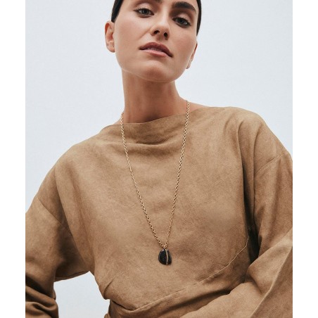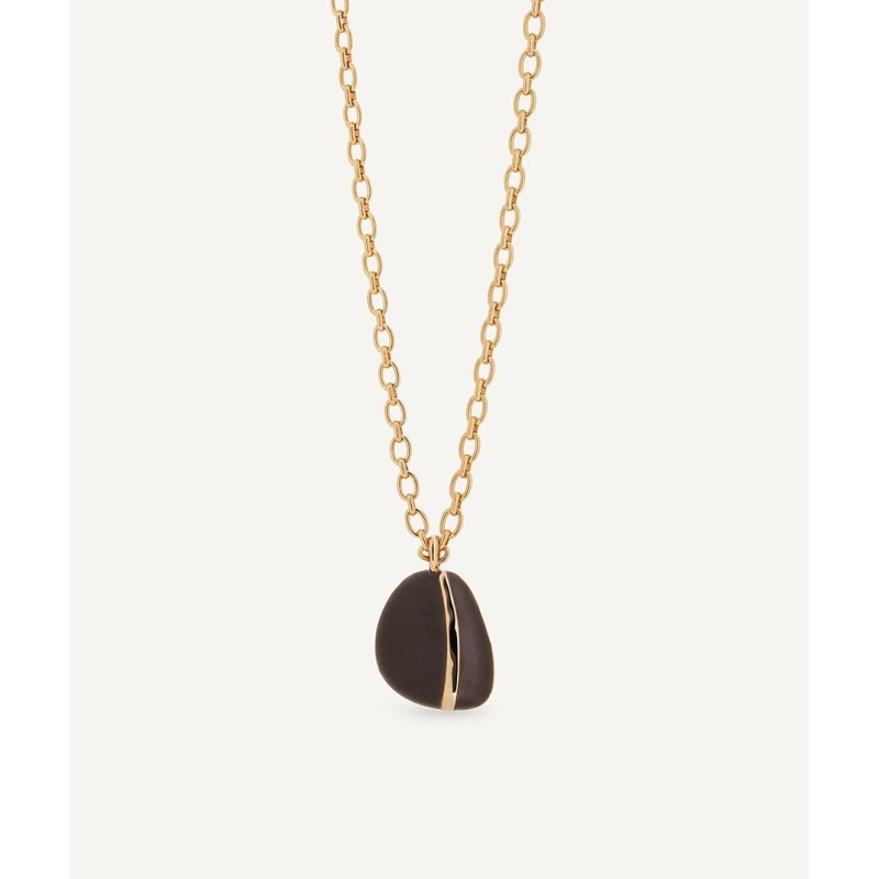 Colgante chapado en oro y esmalte marrón,largo de la cadena 75cms.