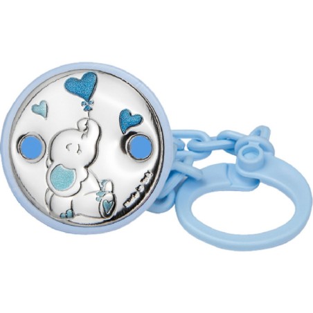 Pinza chupete en color azul celeste.Material plastico y baño de plata.
