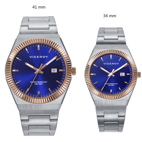 Pareja de relojes todo en acero de la marca Viceroy .Tamaños de 41 mm y 34 mm.