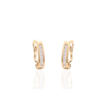 Pendientes de oro amarillo de 18 k, con cierre catalán y circonitas en carril,medidas 14x4 mm.