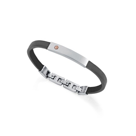 1Pulsera para hombre en piel,acero y oro de 9kt,largo 19,5-22,5 cms.